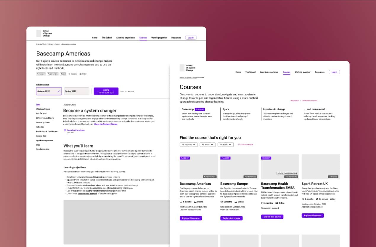 Concevoir le nouveau site Web et le discours de la School of System Change pour en recruter les futures promotions